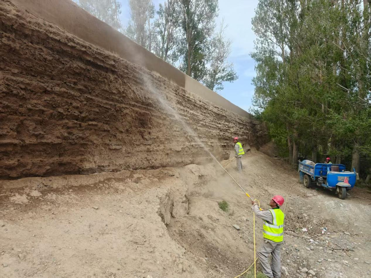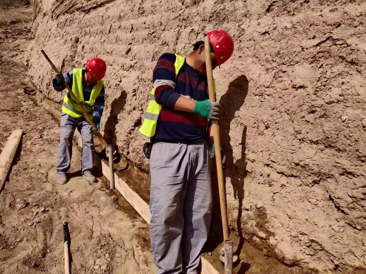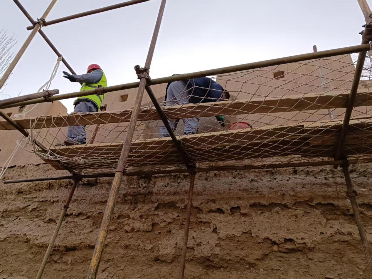 为确保工程达到预期效果,工程开工前,施工单位委托敦煌研究院考古所对石关峡长城和悬壁长城区域开展了考古调查工作,并在施工现场夯筑不同材料配比的墙体试验段,严格执行文物保护维修工程先实验后施工的维修工序;在工程施工工艺上采用传统夯土工艺,在施工材料使用上,除使用传统粘土、石灰、红柳锚杆、麻丝外,还根据土体长城的特性使用了敦煌研究院专利技术PS土体墙体表面固化剂,增强土体长城表面的抗风化强度。监理单位则认真履行监理职责,严把施工工序和工艺关,确保工程质量。