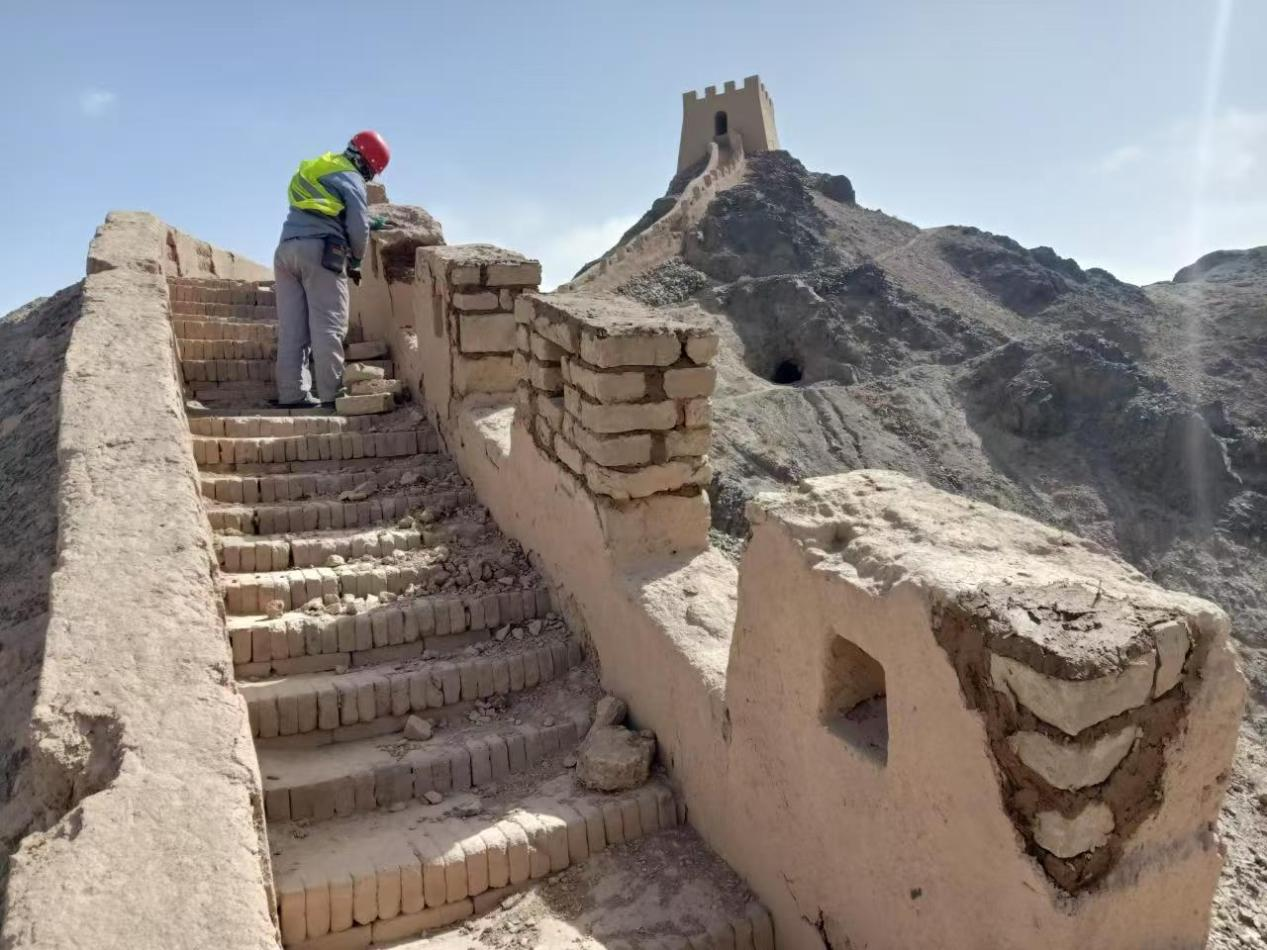 嘉峪关长城石关峡口段(夯土四期)保护维修工程进入收尾阶段