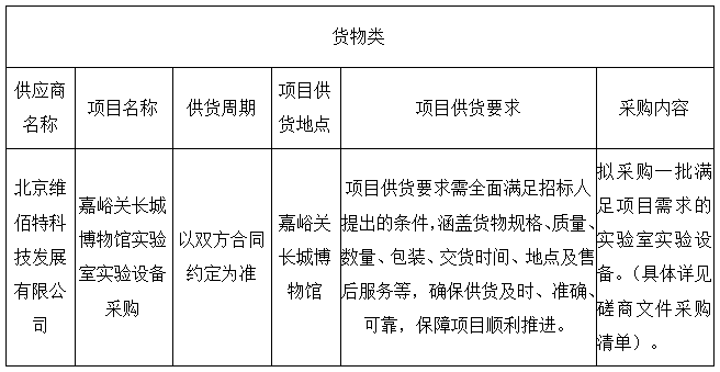 嘉峪关长城博物馆实验室实验设备采购成交公告