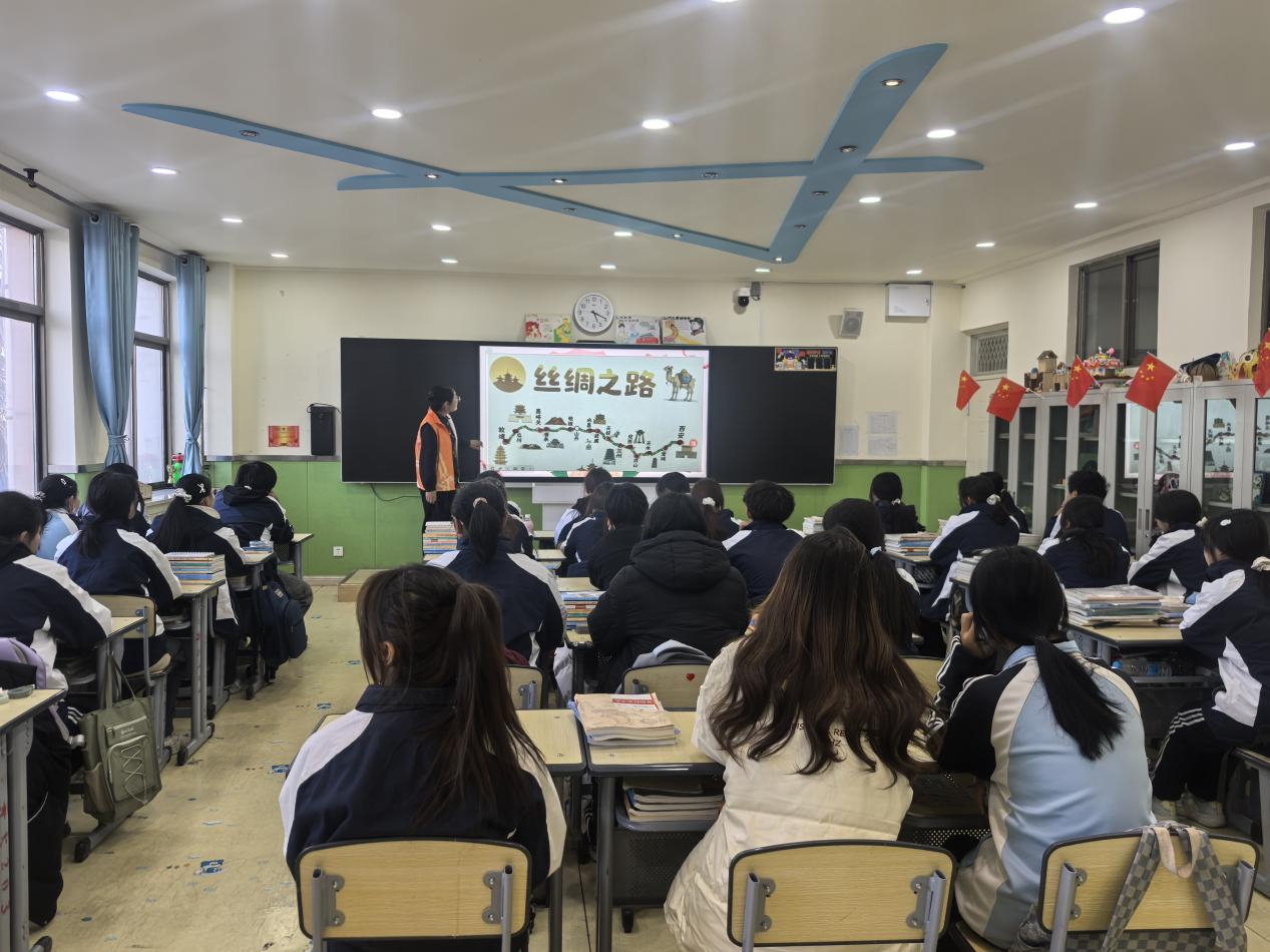 活动首先由讲解员介绍了丝绸之路的起源与发展,并播放了展现丝路文化交融的视频。大漠驼铃、往来商旅、文物交流等生动画面,直观呈现了丝绸之路作为“文明大动脉”的流动魅力,激发了同学们的浓厚兴趣。