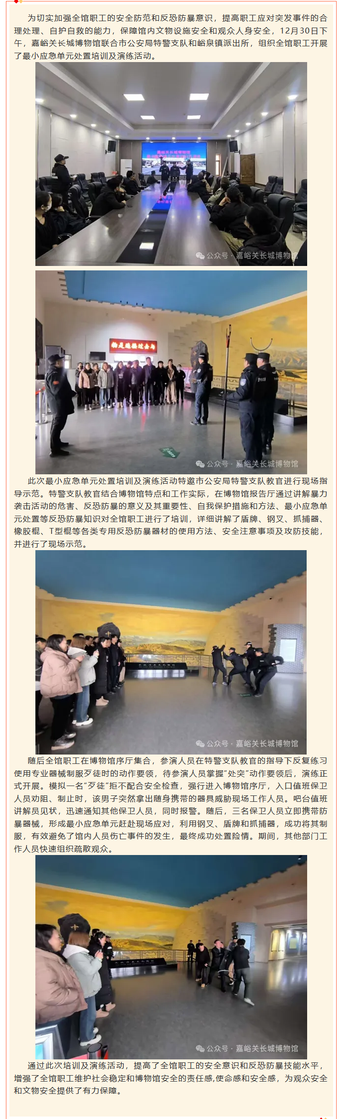 嘉峪关长城博物馆开展最小应急单元处置培训及演练活动