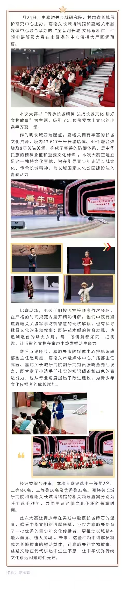 “童音润长城 文脉永相传 ”嘉峪关红领巾讲解员大赛圆满落幕
