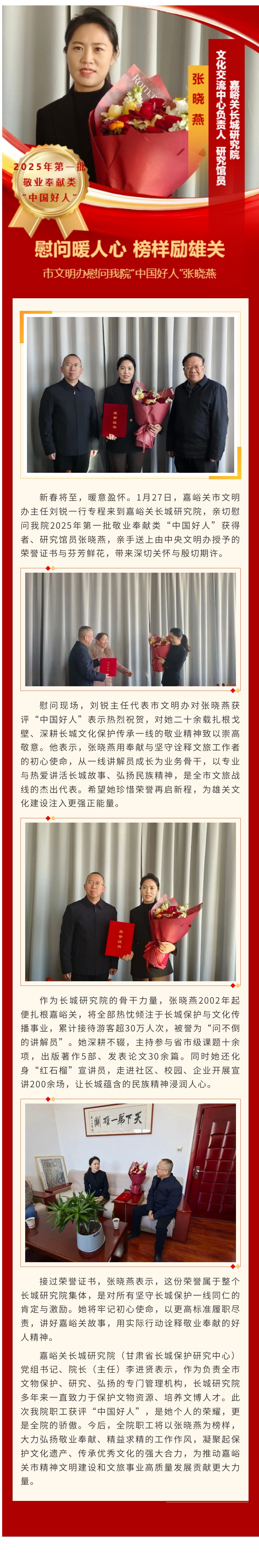 慰问暖人心 榜样励雄关——市文明办慰问我院“中国好人”张晓燕